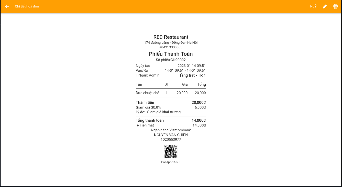 \- Khi ấn xem trước bạn sẽ có 1 mẫu in có QR ngân hàng ở dưới