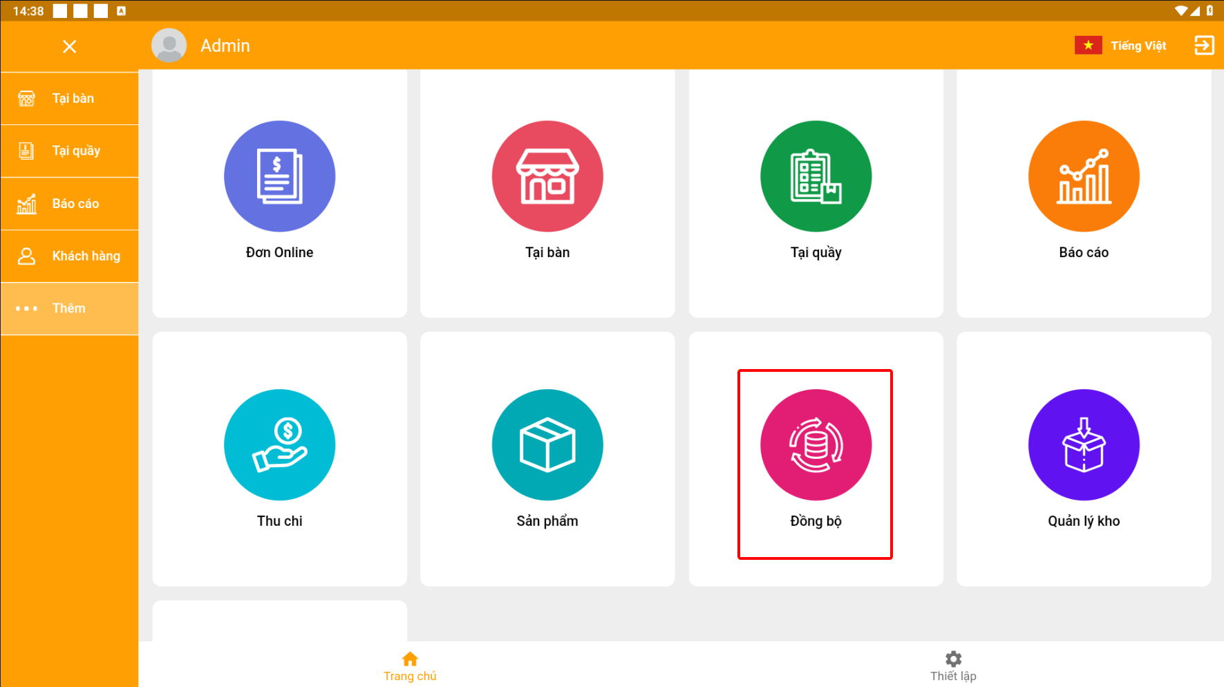 Trên giao diện bán hàng ấn đồng bộ