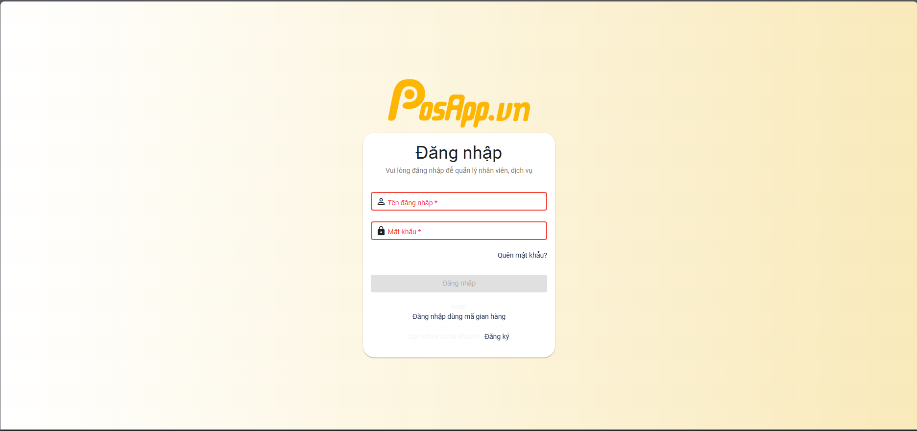 **Bước 1: Truy cập** [**https://admin.posapp.vn/**](https://admin.posapp.vn/) **tiến hành đăng nhập tài khoản admin**