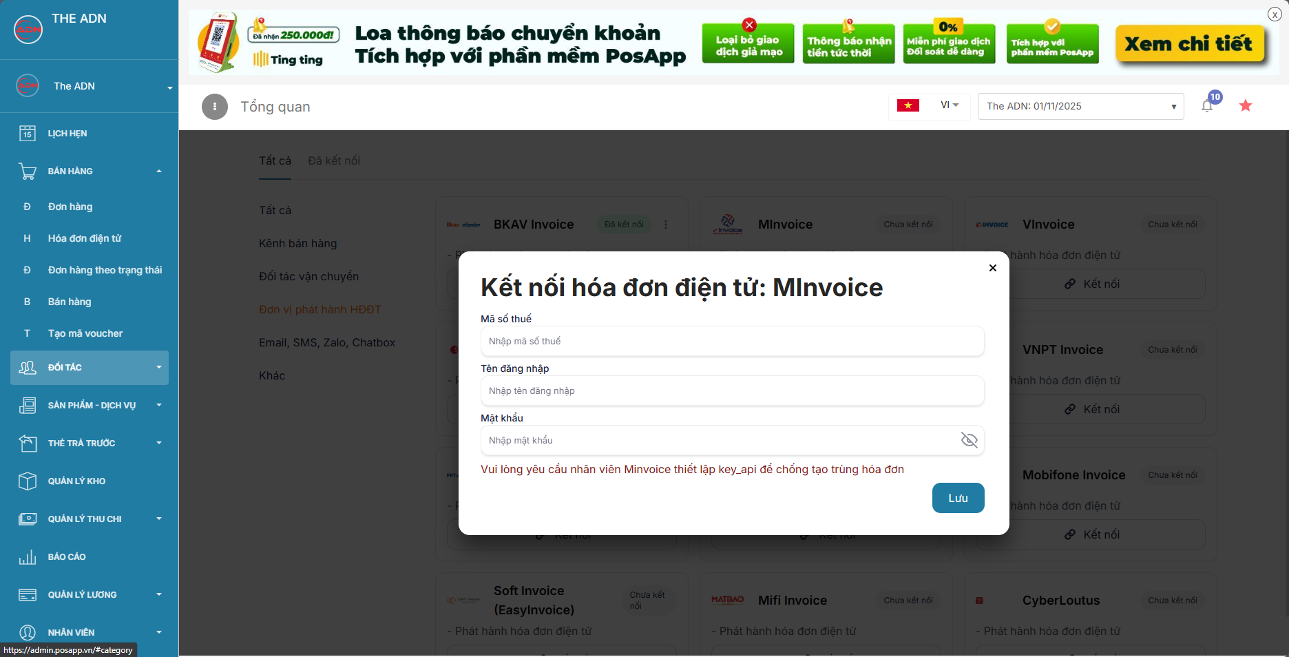 **Bước 4: Điền thông tin kết nối MInvoice**\