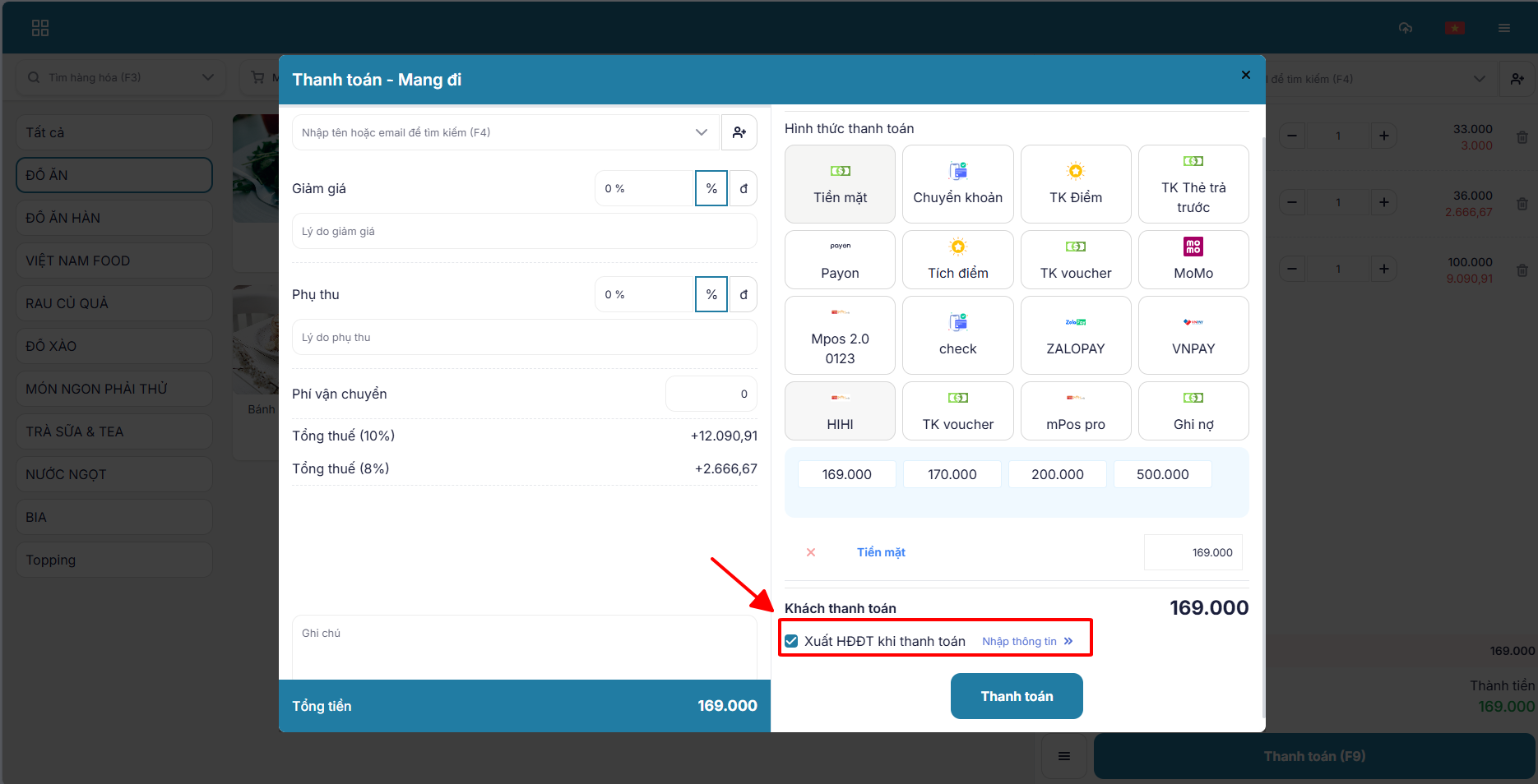 **Bước 4: Chọn xuất hóa đơn điện tử**
