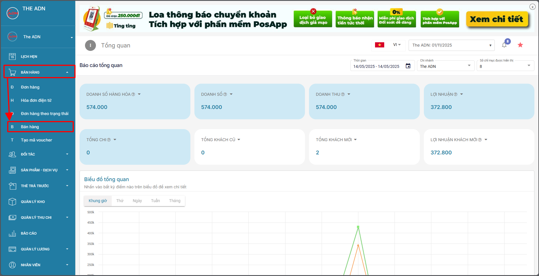 Sau khi đăng nhập bạn chọn Bán hàng > bán hàng