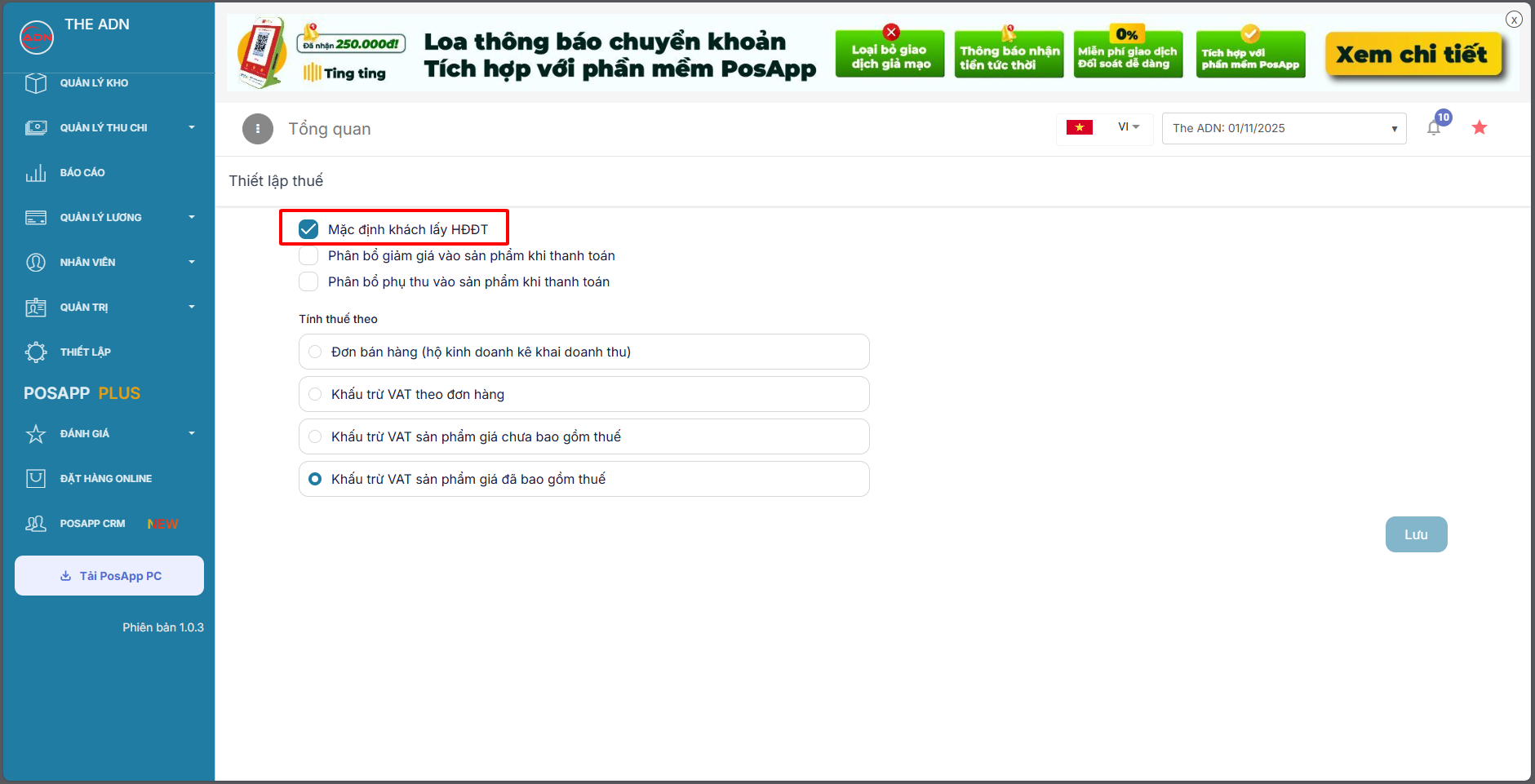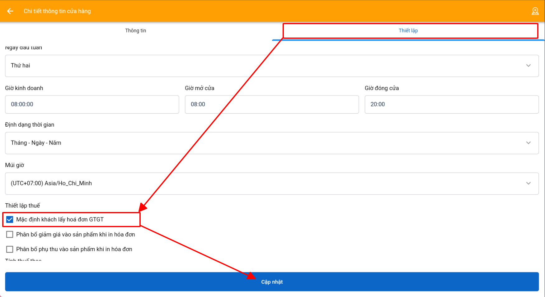 **>> Sau khi cập nhật xong các máy bán hàng lưu lại sẽ thấy tùy chọn được áp dụng**