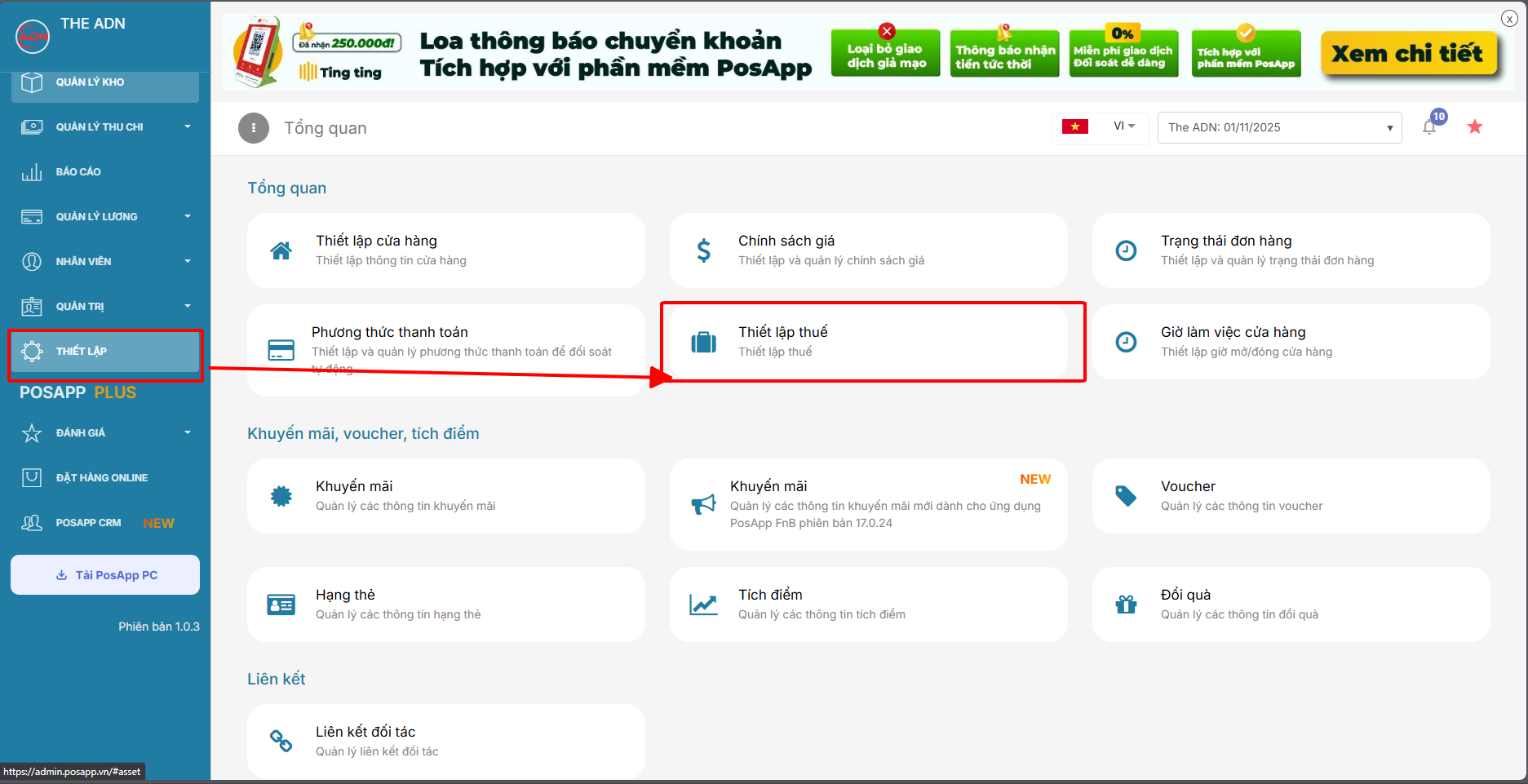 **Bước 1: Trên trang quản trị** [**https://admin.posapp.vn/**](https://admin.posapp.vn/) **đăng nhập**