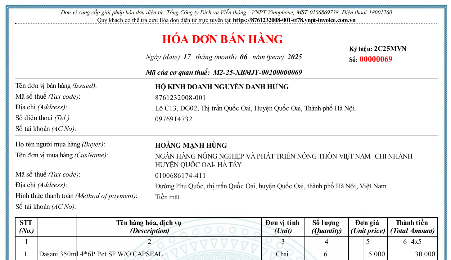<table data-header-hidden><thead><tr><th width="135"></th><th>Phương pháp Trực tiếp</th><th>Phương pháp Khấu trừ</th></tr></thead><tbody><tr><td><strong>1. Loại hóa đơn sử dụng</strong></td><td><strong>Hóa đơn bán hàng</strong><br><img src="https://content.gitbook.com/content/Gu5oyTfAF1pzDKa0KLxL/blobs/ACJht9i9e0oJnIfW3R5l/image.png" alt=""></td><td><strong>Hóa đơn giá trị gia tăng (GTGT)</strong><br><img src="https://content.gitbook.com/content/Gu5oyTfAF1pzDKa0KLxL/blobs/1faUQRh5rTIjJbqwOQRz/image.png" alt=""></td></tr><tr><td><strong>2. Nội dung trên hóa đơn</strong></td><td><p>- <strong>Không tách thuế GTGT</strong> </p><p>- Chỉ ghi <strong>giá thanh toán đã bao gồm thuế</strong> </p><p>- Nếu thuộc diện giảm thuế: ghi chú “Đã giảm 20% tỷ lệ % thuế GTGT theo NQ 174/2024/QH15”</p></td><td><p>- <strong>Tách rõ tiền trước thuế và tiền thuế GTGT</strong> </p><p>- Ví dụ: Giá chưa thuế: 1.000.000 Thuế GTGT (8%): 80.000 Tổng: 1.080.000</p></td></tr><tr><td><strong>3. Mẫu số hóa đơn (ký hiệu)</strong></td><td><strong>Bắt đầu bằng số <code>2</code></strong> → ví dụ: <code>2C25MTT</code>, <code>2C25MYK</code> (hóa đơn bán hàng từ máy tính tiền)</td><td><strong>Bắt đầu bằng số <code>1</code></strong> → ví dụ: <code>1C25TAA</code>, <code>1C25MTT</code> (hóa đơn GTGT từ MTT)</td></tr><tr><td><strong>4. Cách tính thuế GTGT</strong></td><td>Doanh thu × tỷ lệ % thuế (1%, 3%, 5%, tùy ngành)</td><td>Thuế GTGT = GTGT đầu ra – GTGT đầu vào</td></tr><tr><td><strong>5. Đối tượng áp dụng</strong></td><td><p>- Hộ kinh doanh cá thể </p><p>- Doanh nghiệp nhỏ, không đủ điều kiện khấu trừ </p><p><strong>- Không có hóa đơn đầu vào đầy đủ</strong></p></td><td><p>- Doanh nghiệp có quy mô vừa và lớn </p><p>- Có hệ thống kế toán, kê khai hóa đơn đầu vào, đầu ra</p></td></tr><tr><td><strong>6. Ngành nghề điển hình</strong></td><td><p>- Cửa hàng ăn uống </p><p>- Tiệm tóc, spa nhỏ </p><p>- Bán lẻ tạp hóa, điện thoại, thời trang - Quán cà phê, nhà trọ, sửa xe ✅ Không cần kê khai hóa đơn đầu vào</p></td><td><p>- Xây dựng, sản xuất </p><p>- Xuất nhập khẩu </p><p>- Bán buôn, đại lý </p><p>- Các ngành có đầu vào lớn, cần hoàn thuế</p></td></tr><tr><td><strong>7. Ưu điểm</strong></td><td><p>- Thủ tục đơn giản </p><p>- Không cần kế toán chuyên sâu </p><p>- Phù hợp hộ cá thể</p></td><td><p>- Có thể khấu trừ hoặc hoàn thuế </p><p>- Được áp dụng thuế 0% với hàng xuất khẩu</p></td></tr><tr><td>8<strong>. Có thể hiện dòng “thuế GTGT” trên hóa đơn không?</strong></td><td>❌ Không Chỉ có tổng tiền thanh toán như hóa đơn bán hàng thông thường</td><td>✅ Có Tách rõ tiền trước thuế, tiền thuế GTGT và tổng cộng</td></tr></tbody></table>