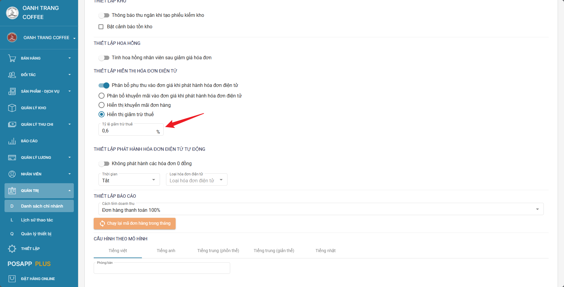Bật giảm trừ > điền %&#x20;