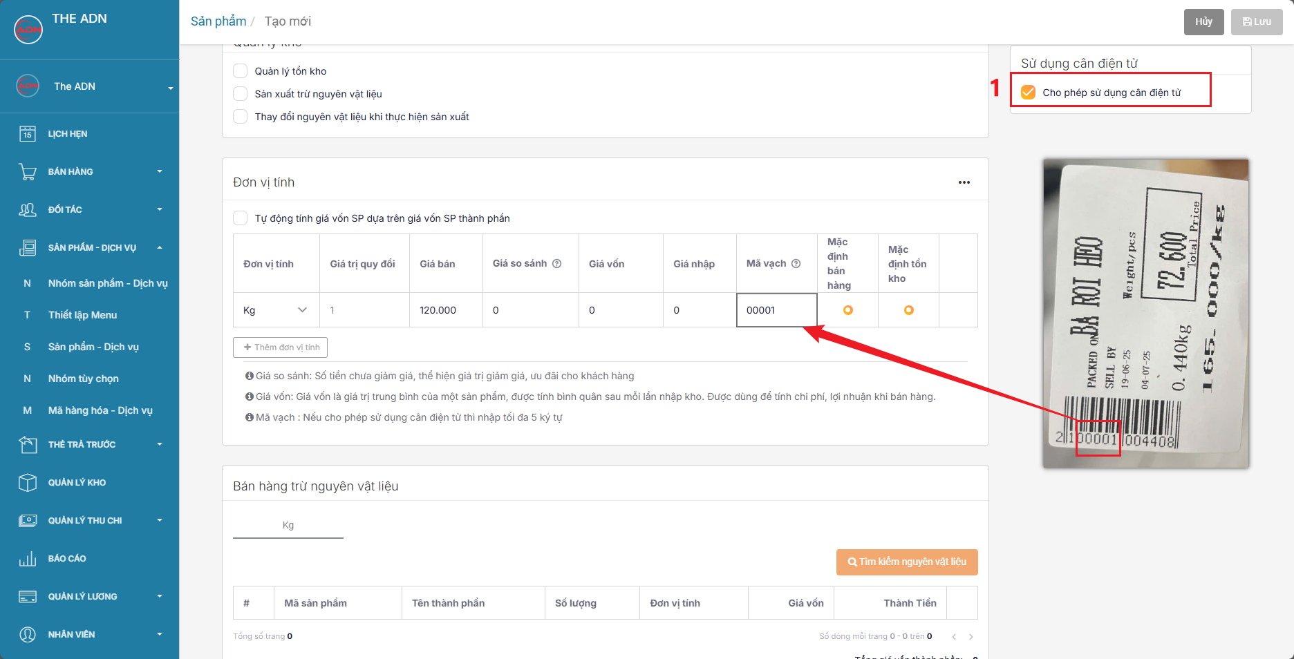 ## B. Khai báo sản phẩm nào sử dụng tính năng cân điện tử