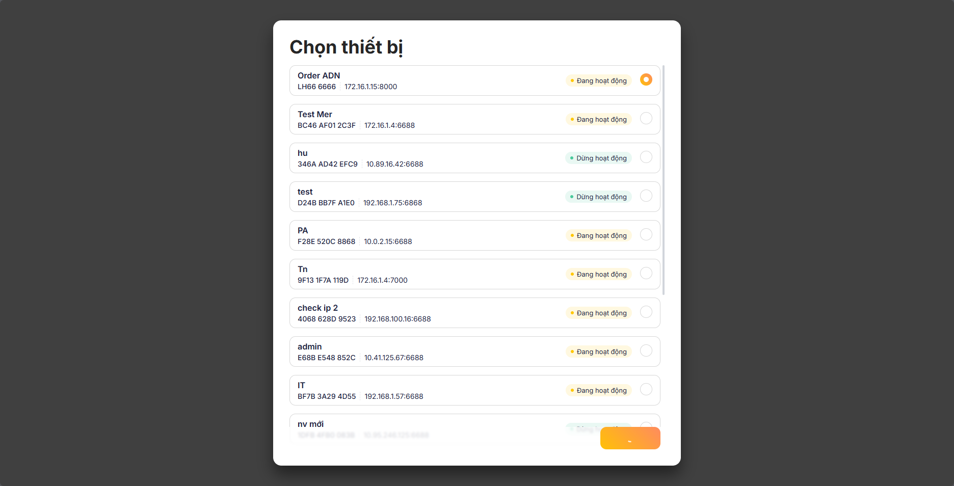 Bước 3: Chọn 1 mã thiết bị bất kỳ