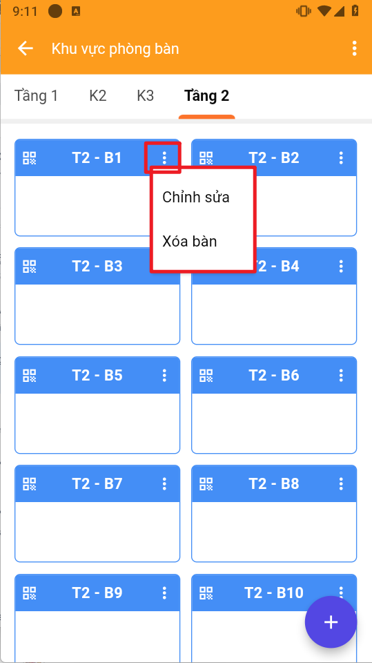 Chọn bàn cần chỉnh sửa hoặc xóa > ấn dấu 3 chấm > chỉnh sửa hoặc xóa