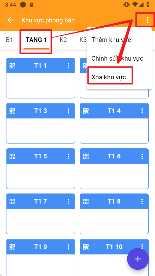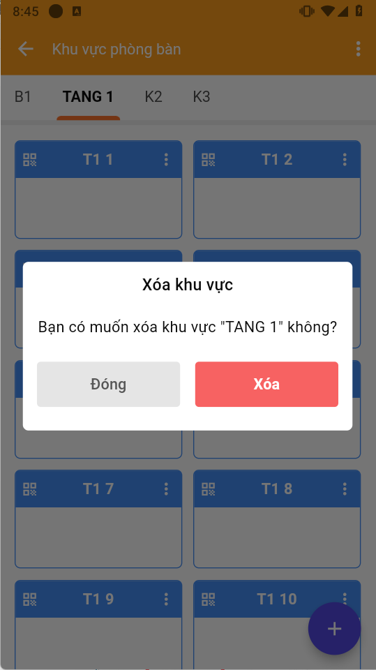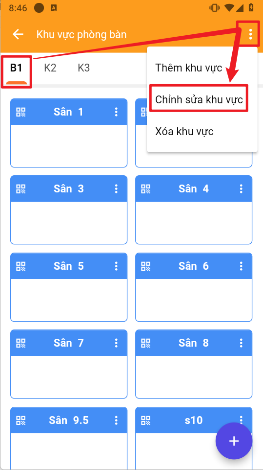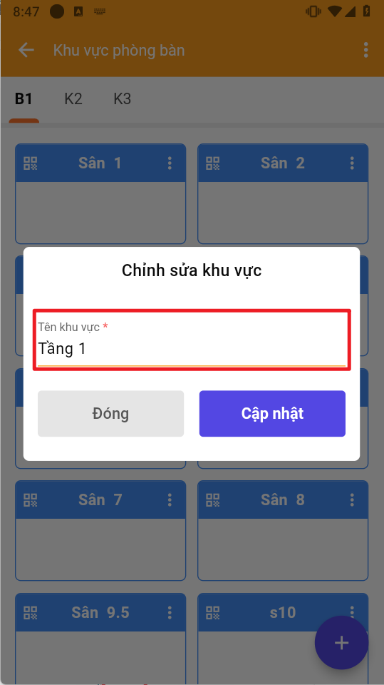 Chỉnh sửa tạo khu vực phòng bàn ngay trên ứng dụng quản lý