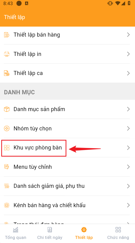 Tại đây bạn có thể thao tác quản lý phòng bàn của mình theo danh mục bên dưới