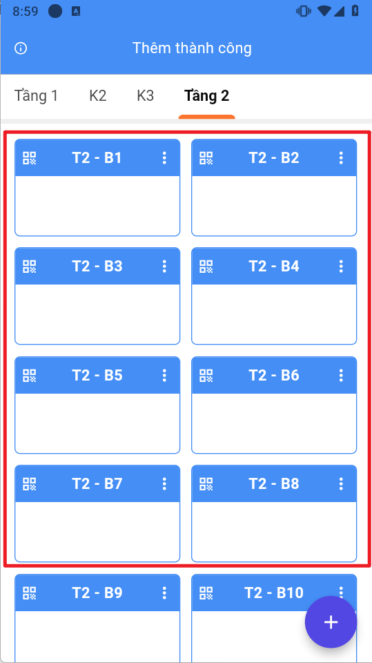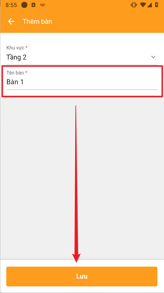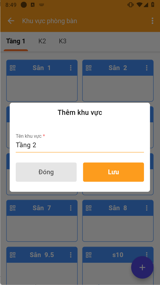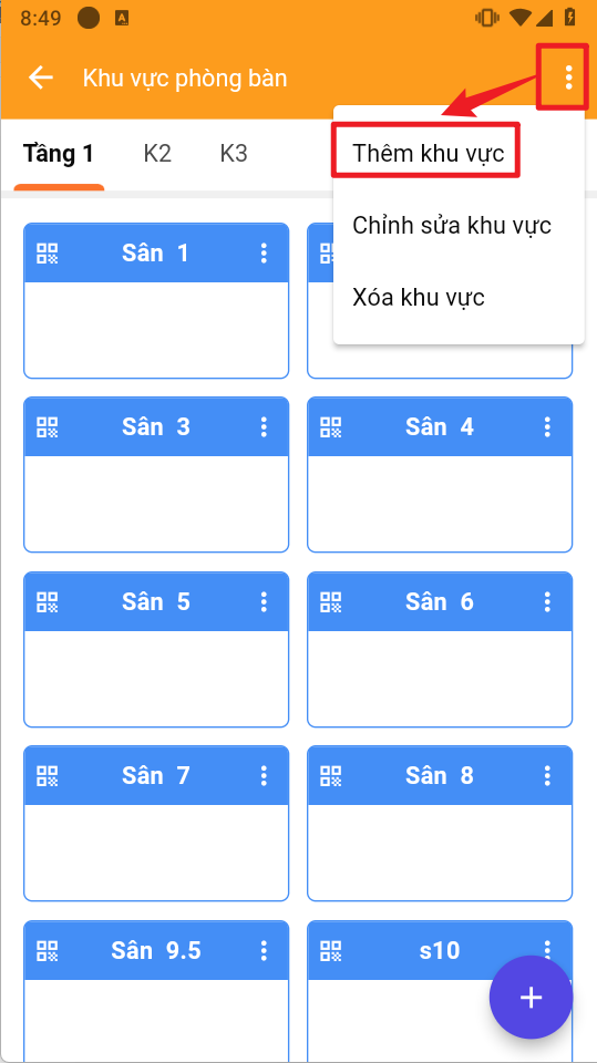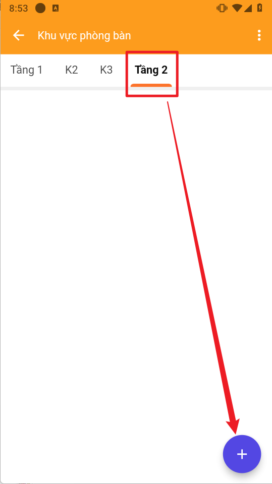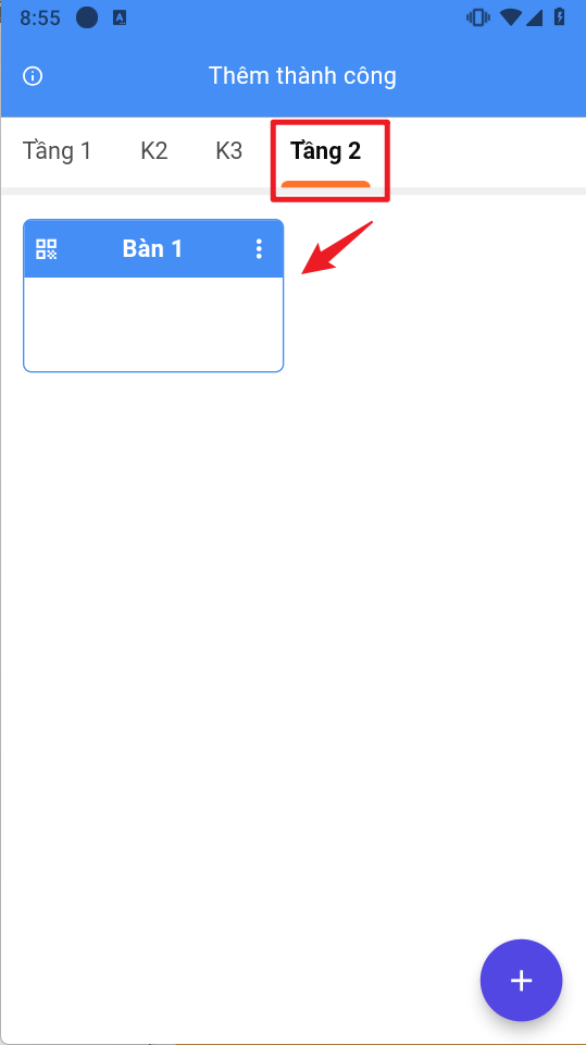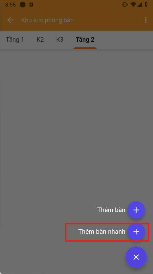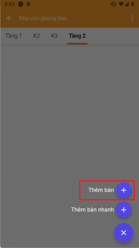 Chọn vào khu vực muốn thêm bàn > ấn dấu cộng