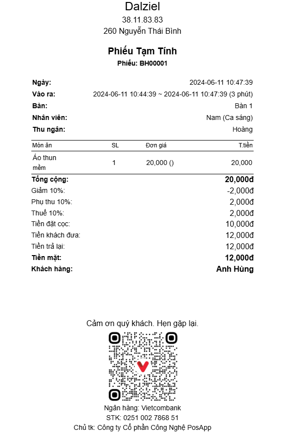 Chủ tk:  Công ty Cổ phần Công Nghệ PosApp