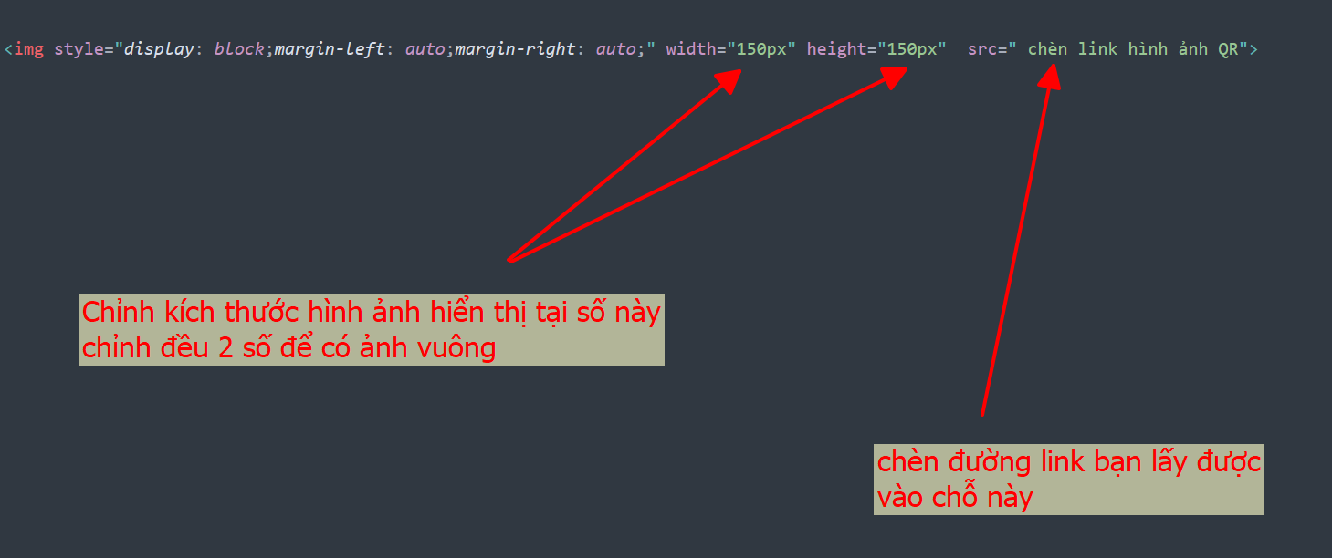 Sau khi dán link QR ở bước 1.7. vào đoạn code ta được như sau và sao chép toàn bộ đoạn code