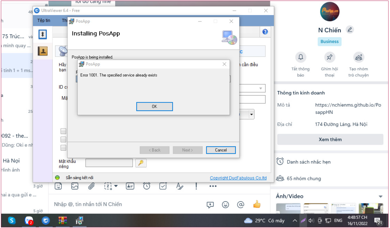 ### C) Lỗi Error 1001 khi cài hoặc gỡ PosApp&#x20;