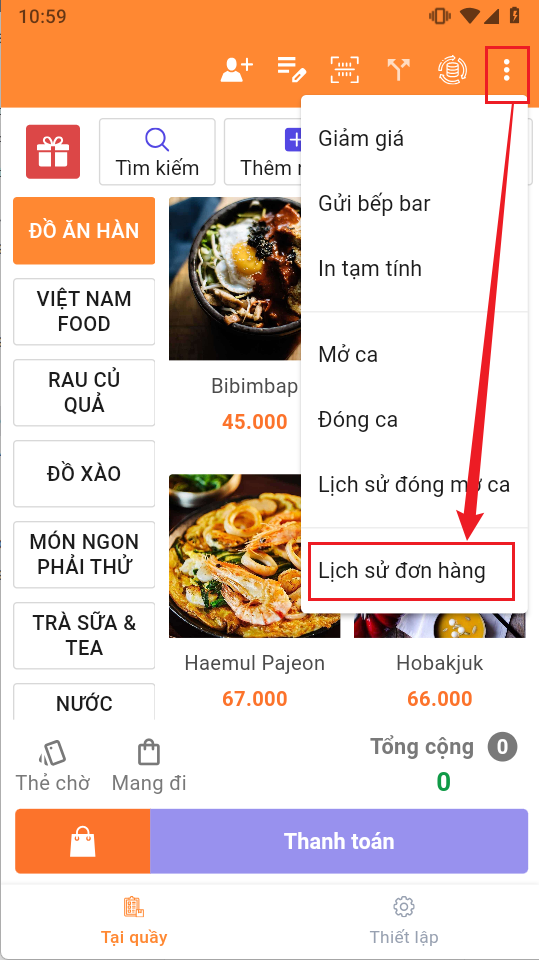 Tại mục bán hàng, lựa chọn sản phẩm rồi ấn thanh toán