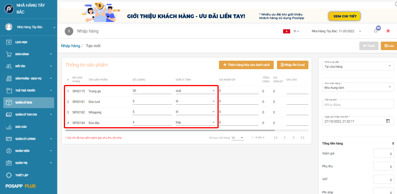**Bước 7:** Tiếp theo mình sẽ định lượng NVL như bình thường