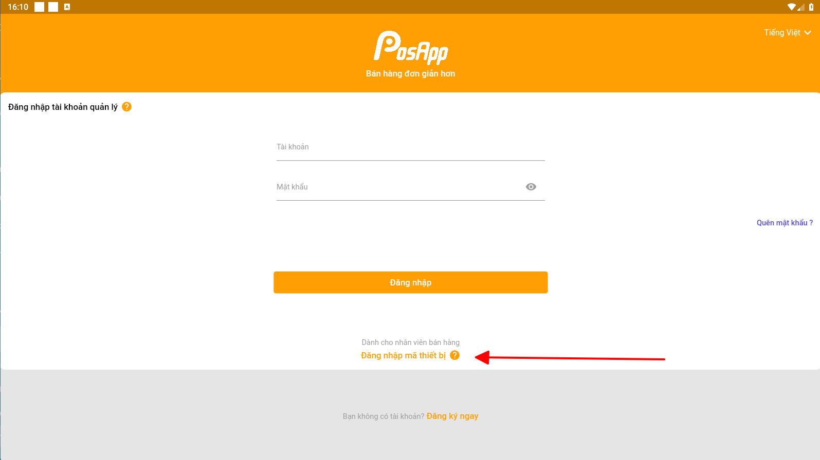 Như vậy là đã đăng nhập thành công cho thiết bị bán hàng độc lập