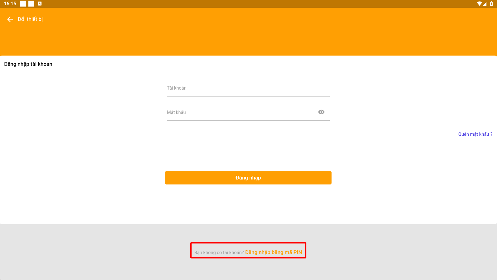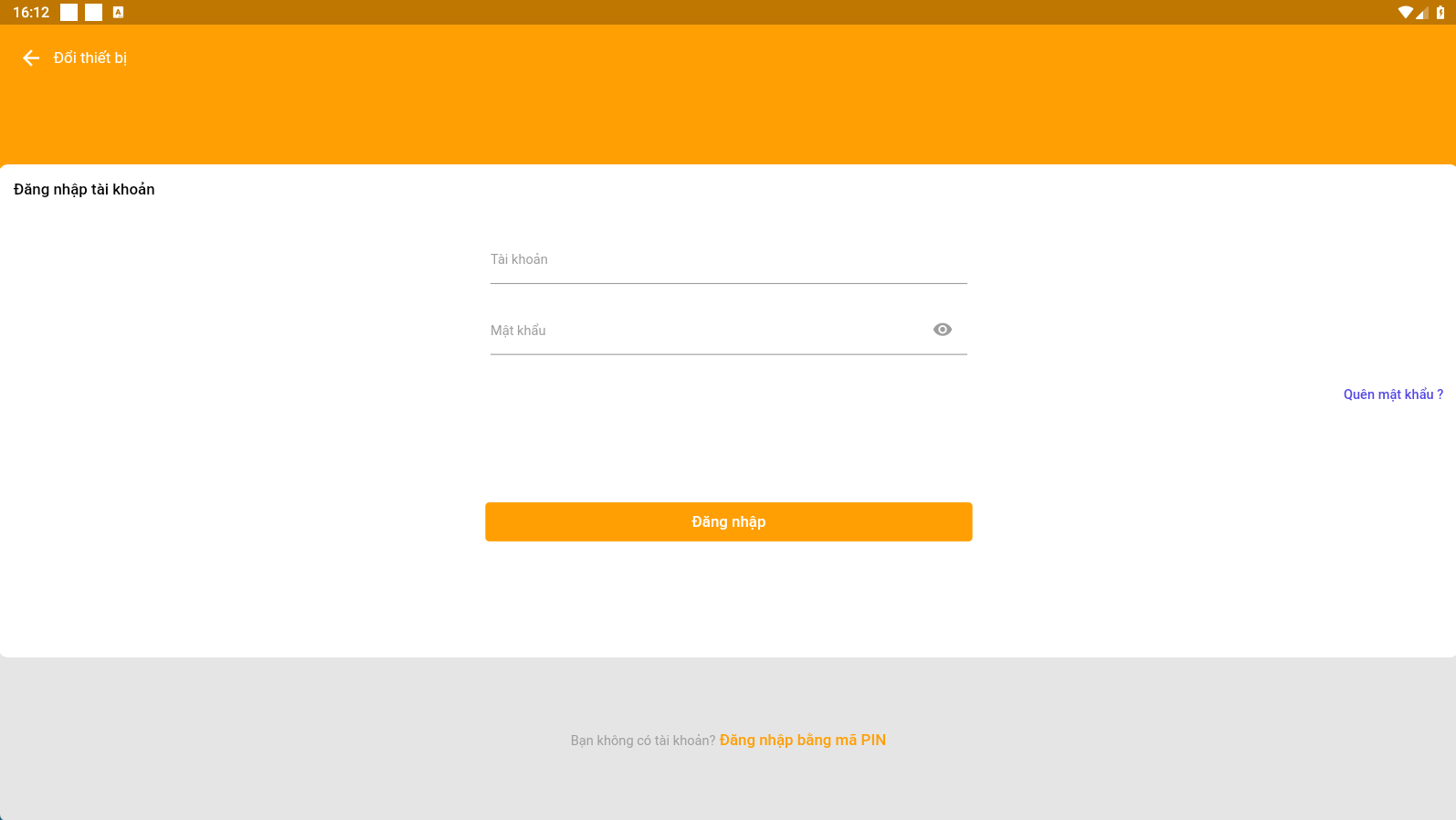 2. ***Thông tin đăng nhập là (Tài khoản và mập khẩu) hoặc (mã pin) tùy theo cách tạo***