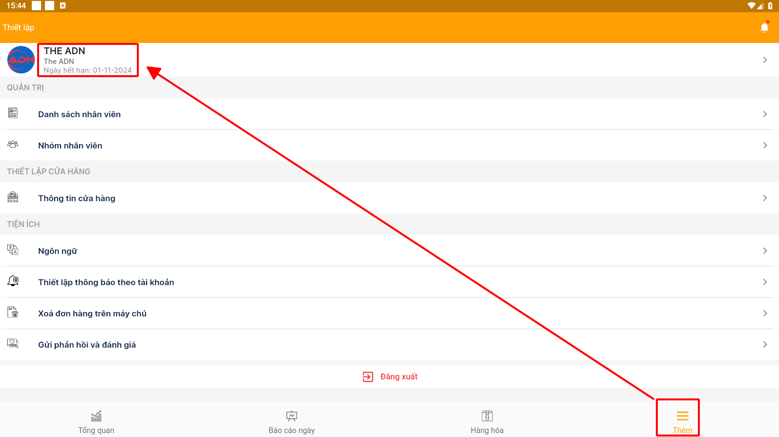 B3: Tại giao diện chính ấn "Thêm" rồi chọn vào tên toài khoản phía trên cùng