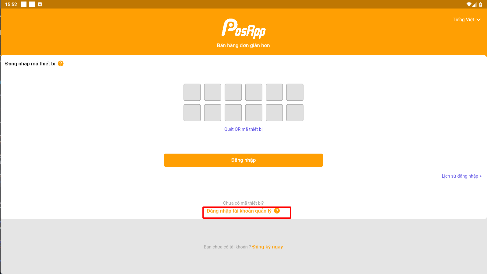 B3: Nếu đang ở màn hình này điền tên tài khoản và mật khẩu của chủ cửa hàng hoặc tài khoản quản lý