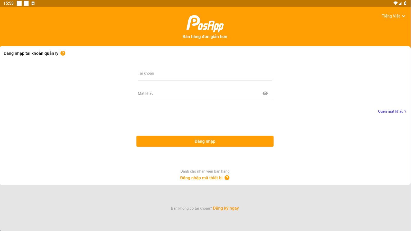 B1: Đăng nhập tải khoản quản lý trên web [PosApp.vn](https://posapp.vn/)